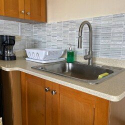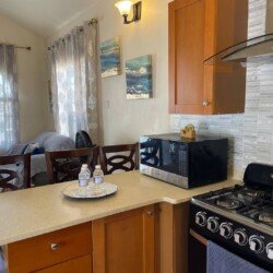This is a 2 bedroom apartment that’s equipped with a full kitchen in case guests want to prepare home cooked meals. The primary bedroom is fitted with a king bed. The land scaping is impeccable and includes a lush lawn.Guest access